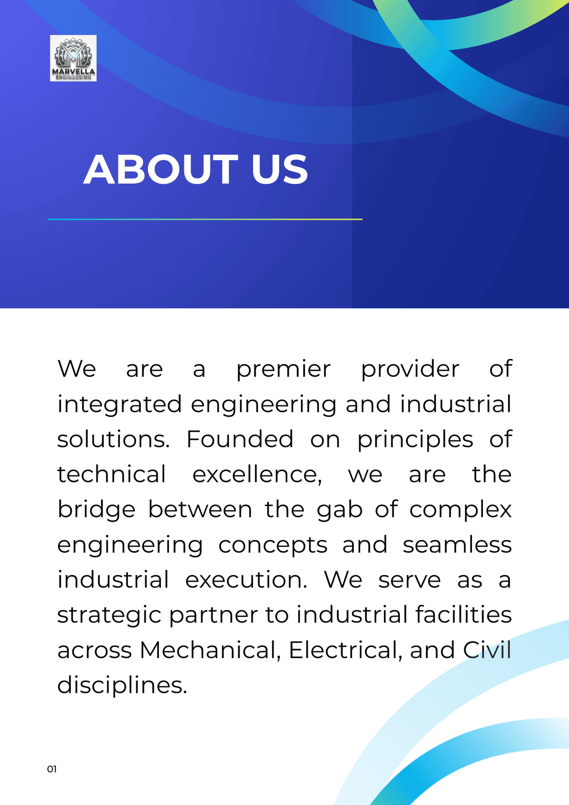 We are a premier provider of integrated engineering and industrial solutions. Founded on principles of technical excellence, we are the bridge between the gap of complex engineering concepts and seamless industrial execution. We serve as a strategic partner to industrial facilities across Mechanical, Electrical, and Civil disciplines.